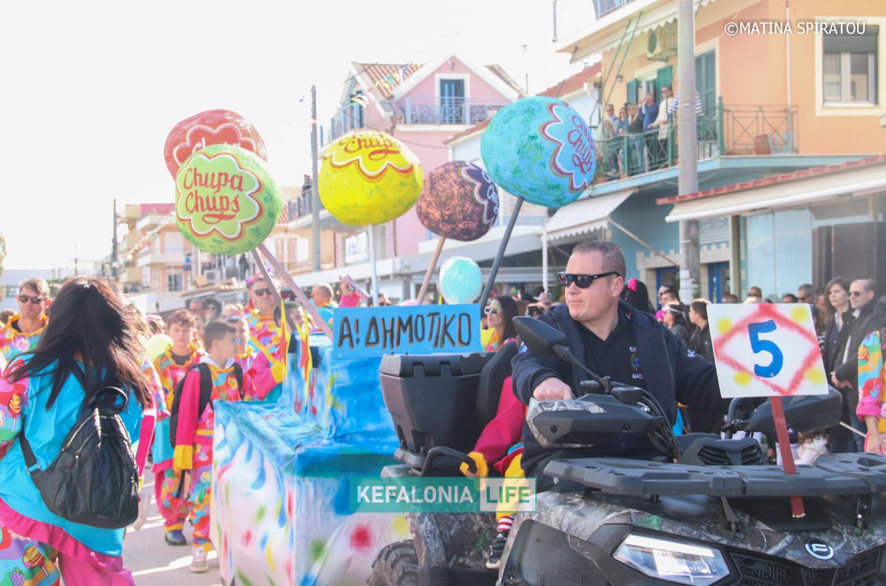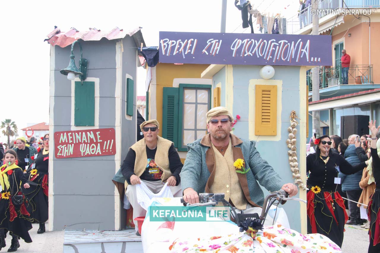 Για σχεδόν 2 ώρες πλήθος καρναβαλιστών έδωσαν τον καλύτερό τους εαυτό με χρώματα, ξεχωριστές ενδυμασίες και καπνογόνα, ενώ πολλά από τα άρματα έκαναν αίσθηση για την ιδέα και την πολιτική τους σάτιρα, με δυνατά σατιρικά χτυπήματα στον Δήμαρχο Ληξουρίου Γιώργο Κατσιβέλη & τη Δημοτική του Αρχή, όπως αναφέραμε ήδη στο άρθρο μας για την Βραδινή Παρέλαση.