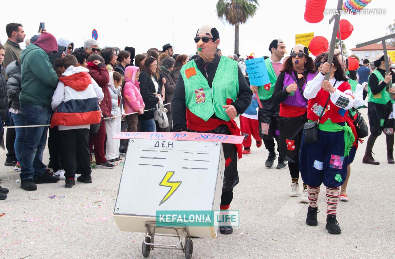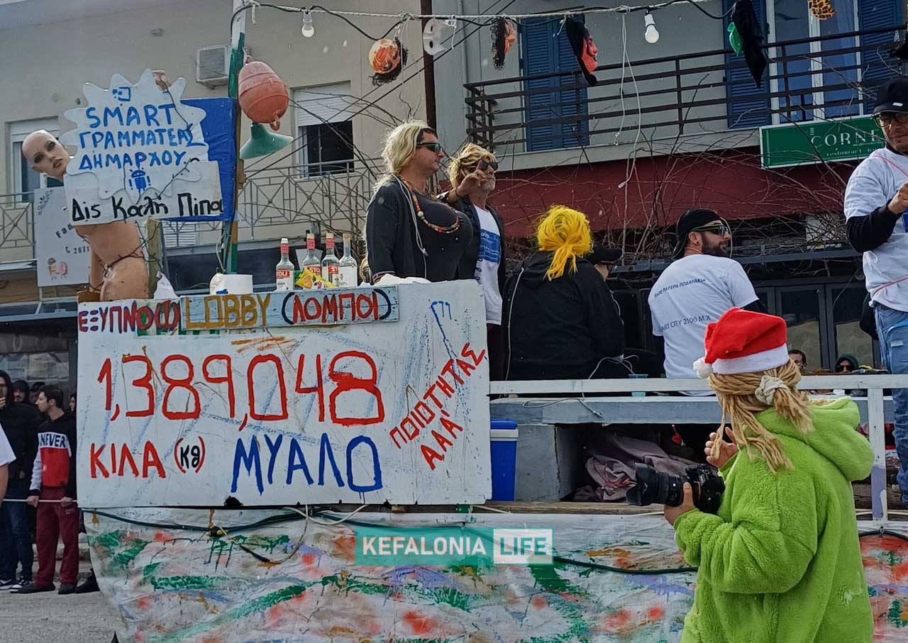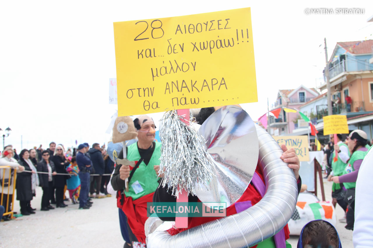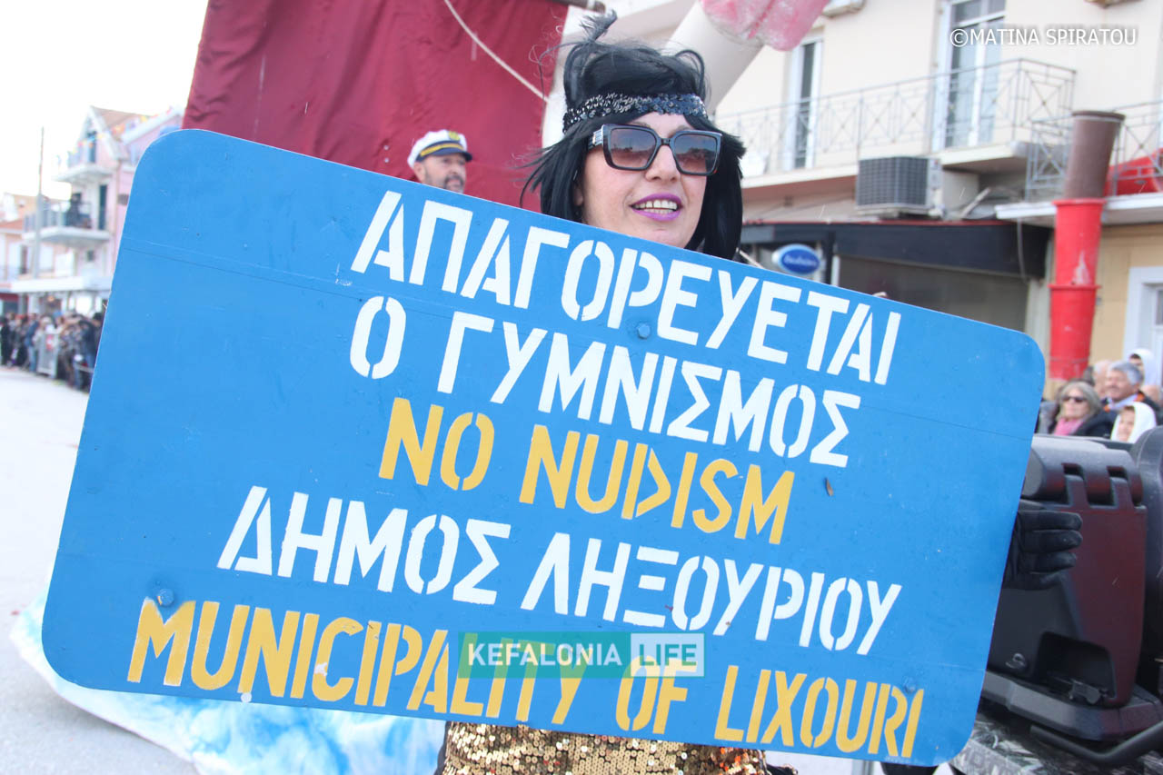 Η παρέλαση ξεχώρισε όχι μόνο για τον παλμό και τη μαζική συμμετοχή, αλλά κυρίως για τον έντονα σατιρικό της χαρακτήρα. Πολλά άρματα και καρναβαλικές ομάδες εστίασαν στον Δήμαρχο και στις πρόσφατες αποφάσεις της Δημοτικής του Αρχής. Ευρηματικά στιχάκια και λεζάντες έκαναν το κοινό να δακρύσει από τα γέλια γνωρίζοντας την πραγματική κατάσταση της πόλης και την οικονομική κατάσταση του Δήμου Ληξουρίου.