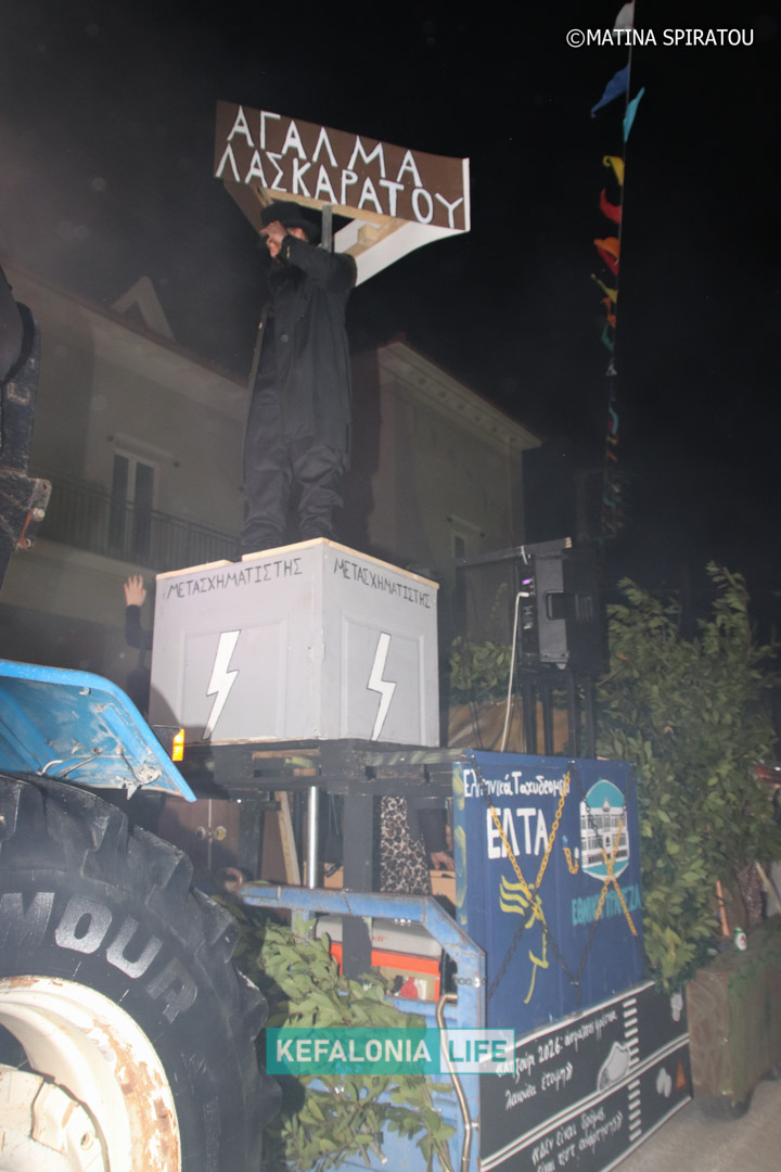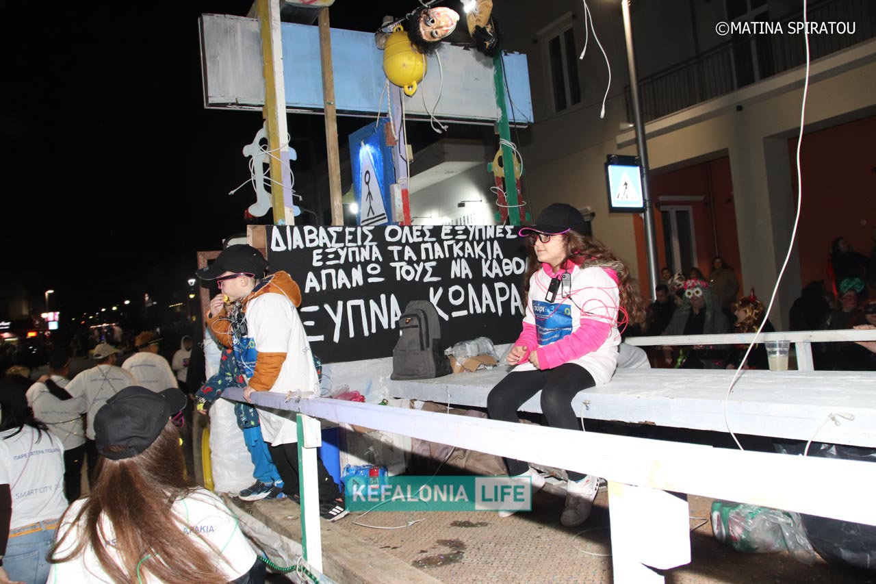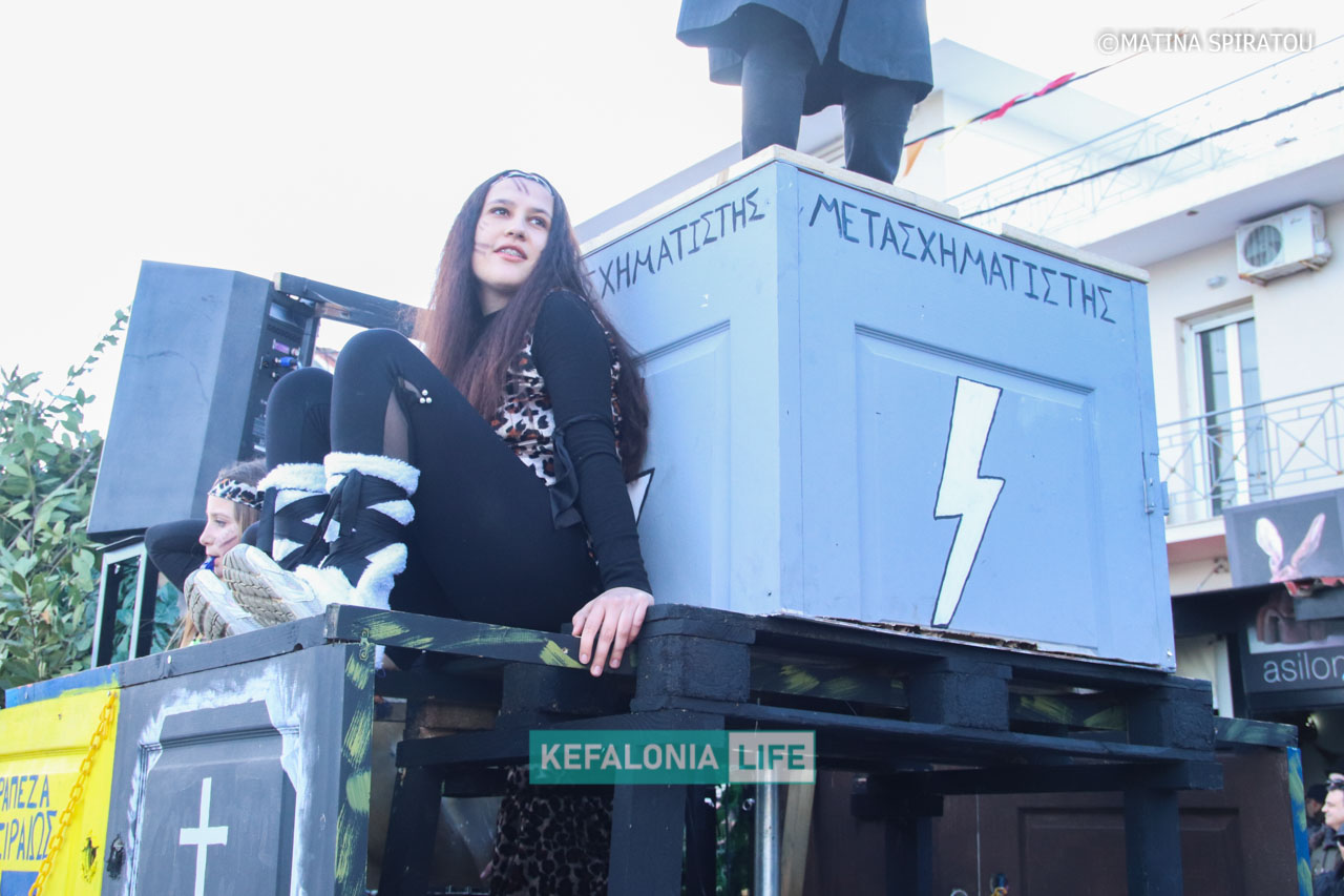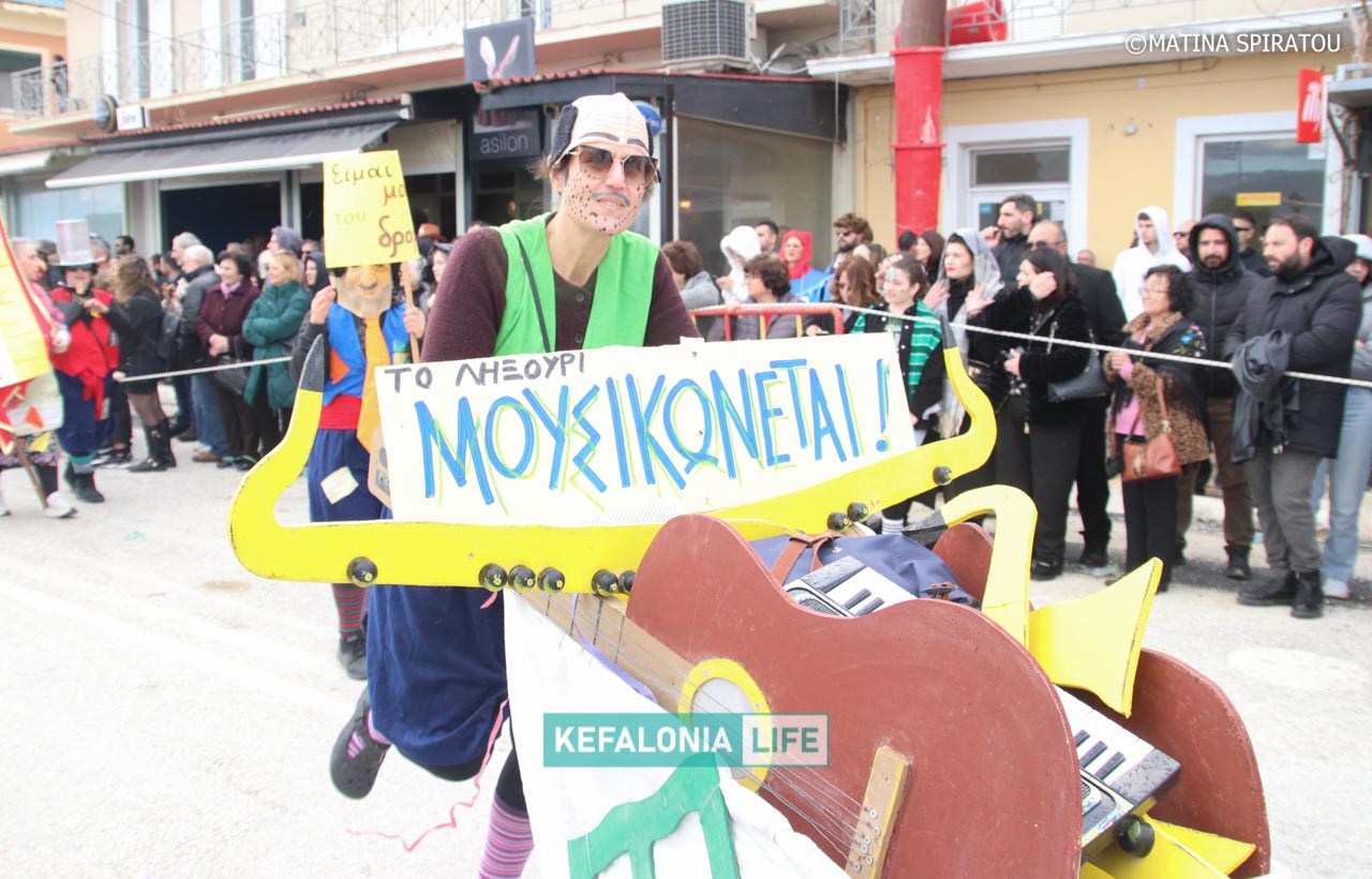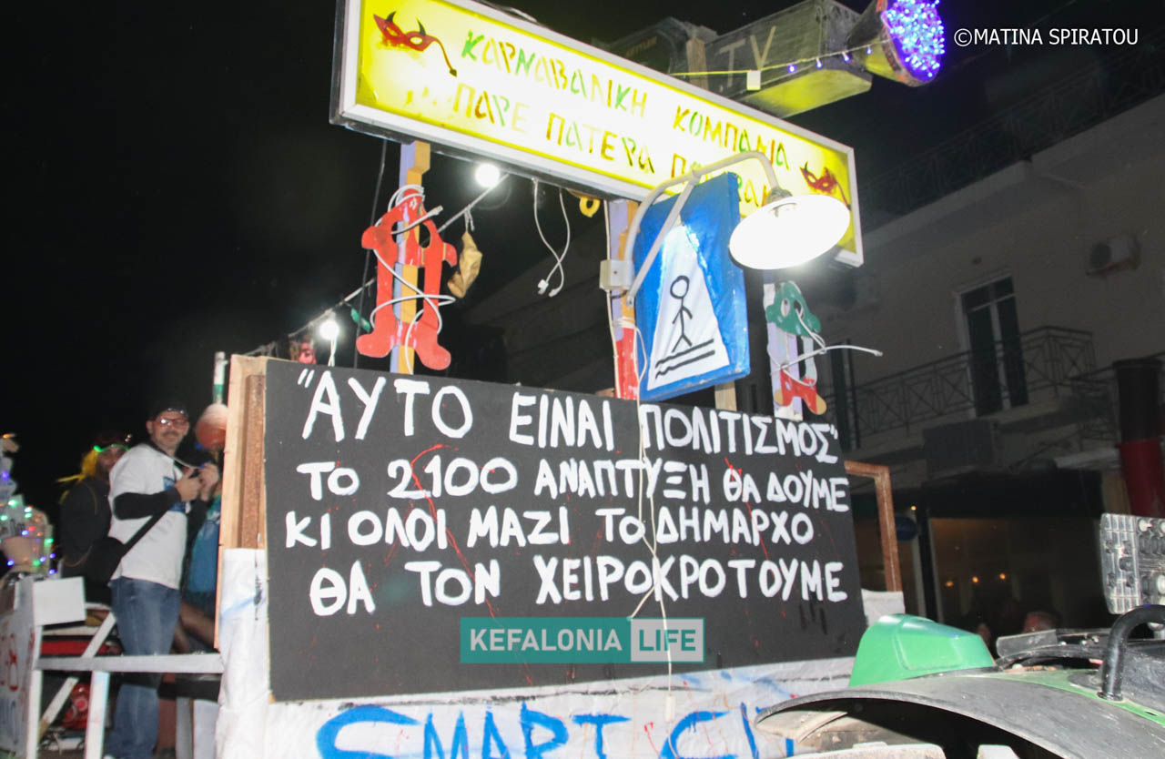 Η παρέλαση ξεχώρισε όχι μόνο για τον παλμό και τη μαζική συμμετοχή, αλλά κυρίως για τον έντονα σατιρικό της χαρακτήρα. Πολλά άρματα και καρναβαλικές ομάδες εστίασαν στον Δήμαρχο και στις πρόσφατες αποφάσεις της Δημοτικής του Αρχής. Ευρηματικά στιχάκια και λεζάντες έκαναν το κοινό να δακρύσει από τα γέλια γνωρίζοντας την πραγματική κατάσταση της πόλης και την οικονομική κατάσταση του Δήμου Ληξουρίου.