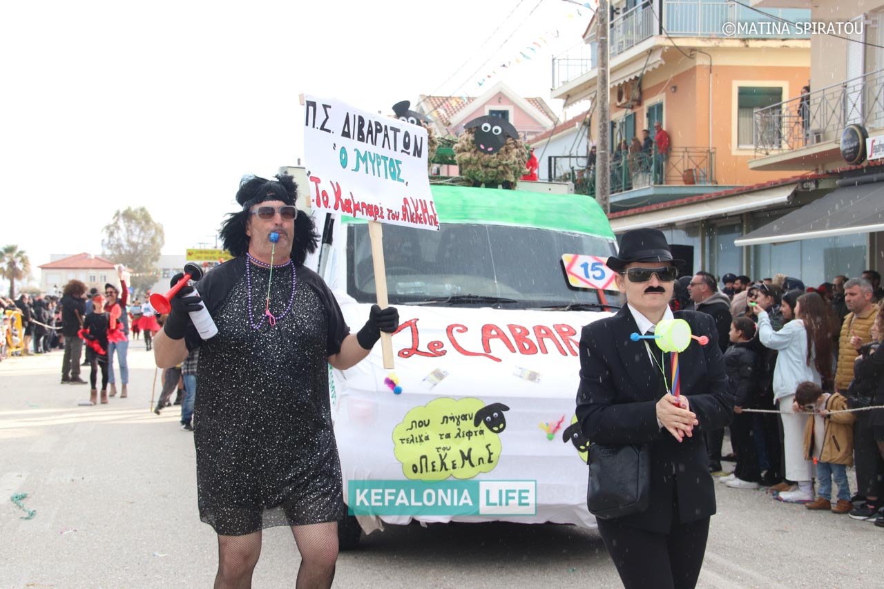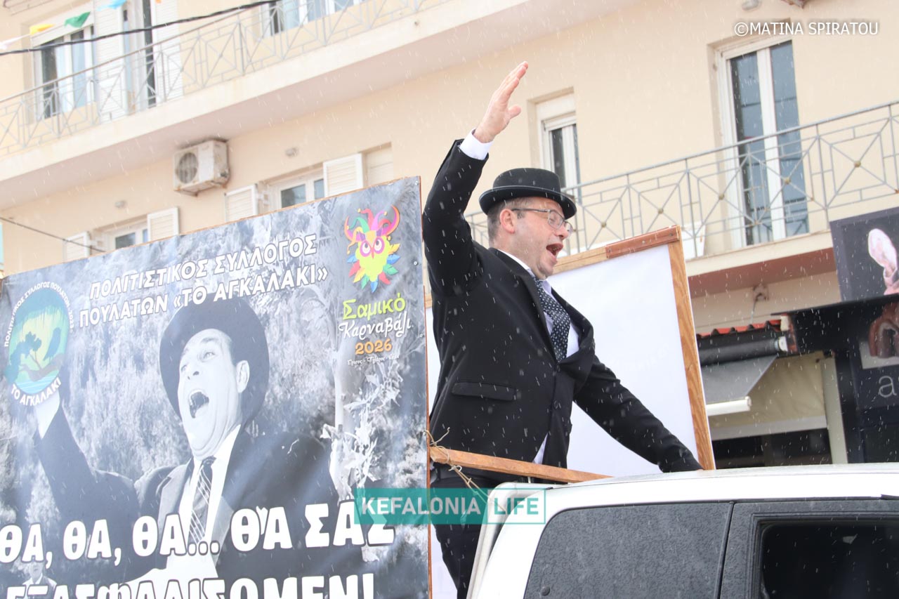 Ξεχωριστό χρώμα στην παρέλαση έδωσαν και οι συμμετοχές από τον Δήμο Σάμης, που ακολούθησαν αμέσως μετά. Ο Πολιτιστικός Σύλλογος Σάμης “Ο Αιγιαλός”, ο Πολιτιστικός Σύλλογος Διβαράτων “Ο Μύρτος” και ο Πολιτιστικός Σύλλογος Πουλάτων “Το Αγκαλάκι” παρουσίασαν ευρηματικές συμμετοχές, ενισχύοντας το κλίμα διαδημοτικής παρουσίας και καρναβαλικής ενότητας. Πριν από την εμφάνιση των γκρουπς των συλλόγων, την παράσταση έκλεψε το άρμα – καρνάβαλος με το λογότυπο του Σαμικού Καρναβαλιού 2026.
