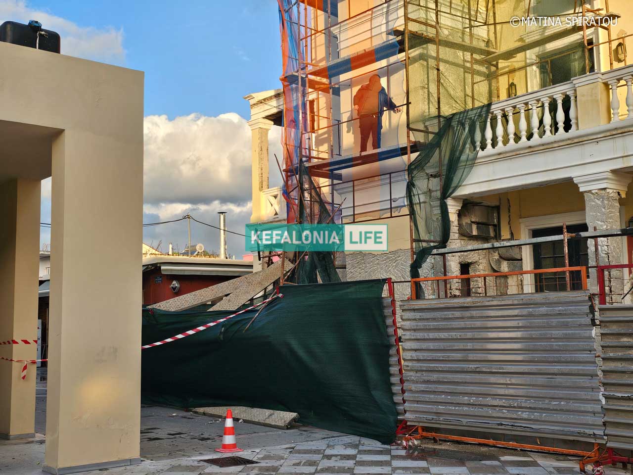 Πτώση εξωτερικών σκαλωσιών σημειώθηκε σήμερα, Δευτέρα 12 Ιανουαρίου 2026, περίπου στις 7:00 το πρωί, στο υπό κατασκευή Θέατρο Ληξουρίου στην Κεφαλονιά, προκαλώντας μικρή αναστάτωση στην περιοχή και σε πολίτες, που άμεσα ενημέρωσαν το Kefalonia Life. Στο σημείο βρέθηκα στις 8:30 το πρωί για τις απαραίτητες φωτογραφίες και το βίντεο.