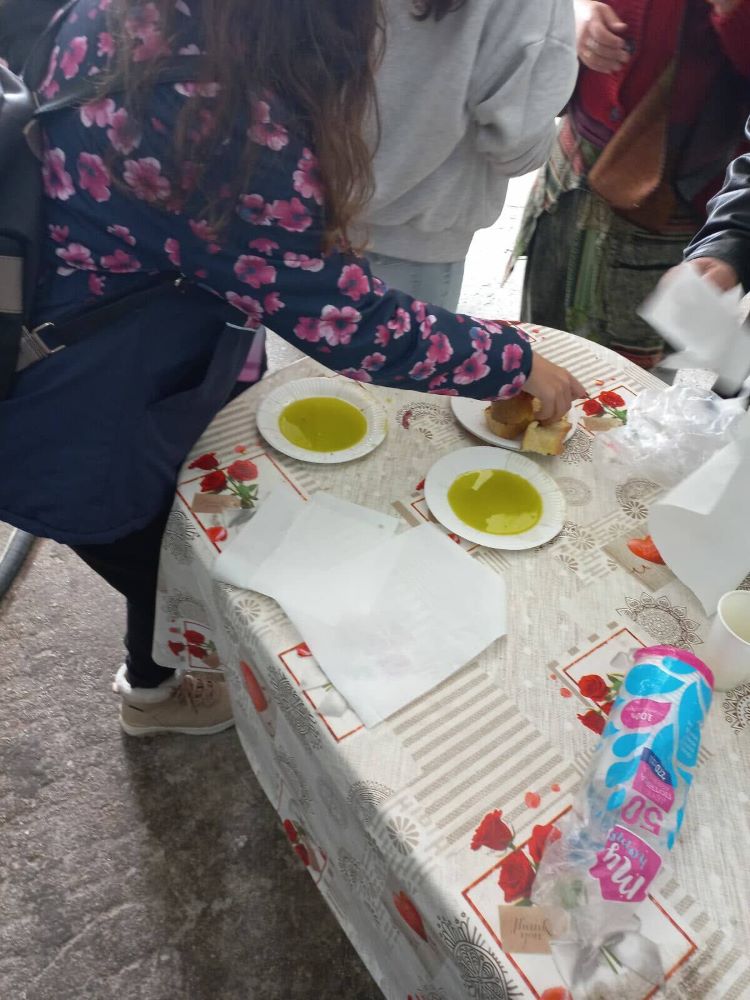 Ακολούθησε επίσκεψη στο ελαιοτριβείο του κ. Παπαδημάτου, όπου παρακολουθήσαμε βήμα βήμα ολόκληρη τη διαδικασία παραγωγής ελαιολάδου και δοκιμάσαμε φρέσκο λάδι.