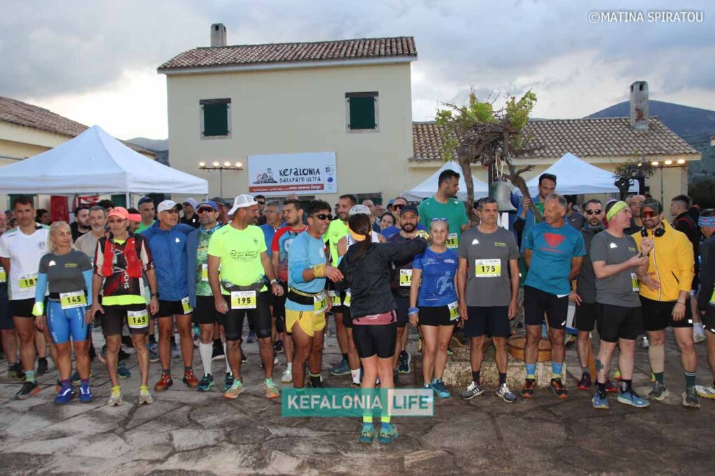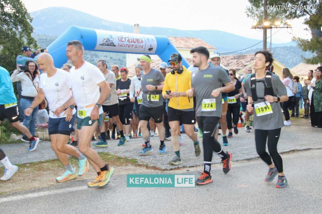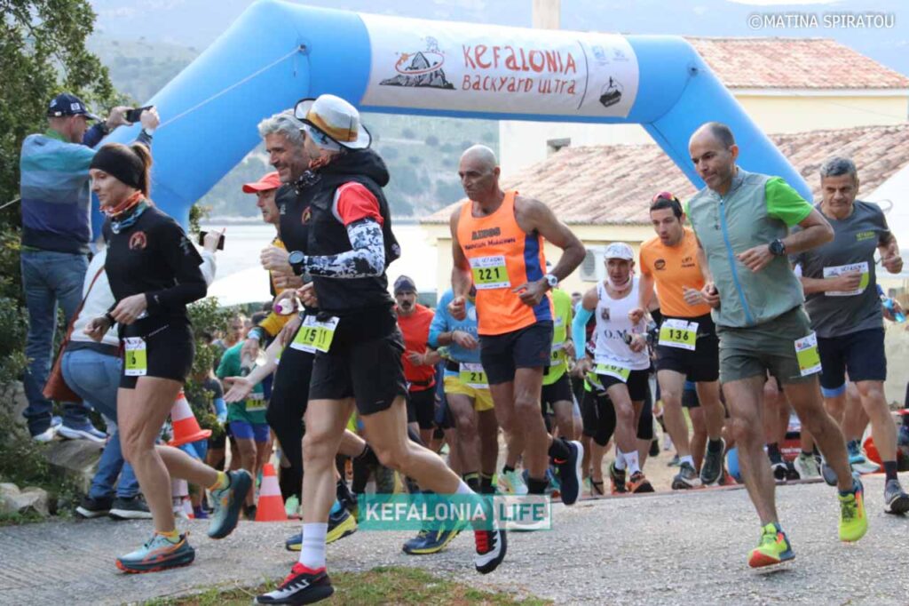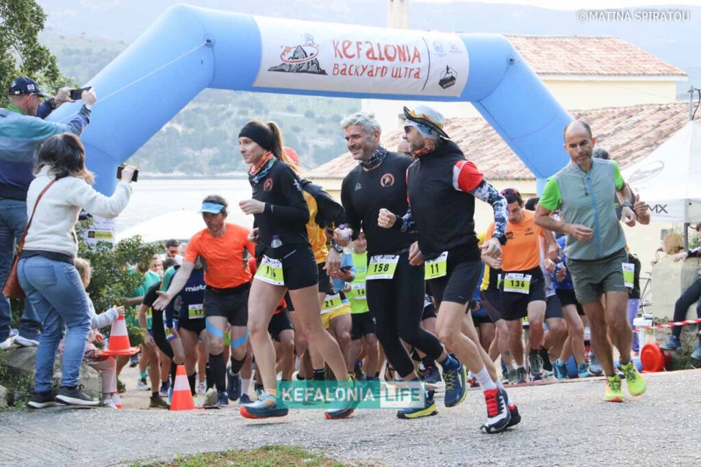 H οργανωτική επιτροπή του Kefalonia Backyard Ultra έδωσε με επιτυχία την έναρξη του αγώνα ορεινού δρόμου, τύπου backyard ultra, σε κυκλική διαδρομή μήκους 6.706 μέτρων. Μια πανέμορφη κυκλική διαδρομή, μέτριας δυσκολίας με μικτό τερραίν [αναλογία άσφαλτος 10%, μονοπάτια καθαρά και σηματοδοτημένα 45%, χωματόδρομος 45%]. Σε αυτή υπάρχει μία και μοναδική ανάβαση στο λόφο του Αγίου Αθανασίου, ενώ η συνολική θετική και αρνητική υψομετρική διαφορά είναι περίπου 135 μέτρα. Εκτός από την συγκεκριμένη ανάβαση, το μεγαλύτερο μέρος της διαδρομής ήταν επίπεδο ή ελαφρά κατηφορικό.