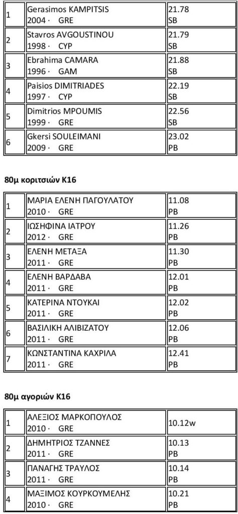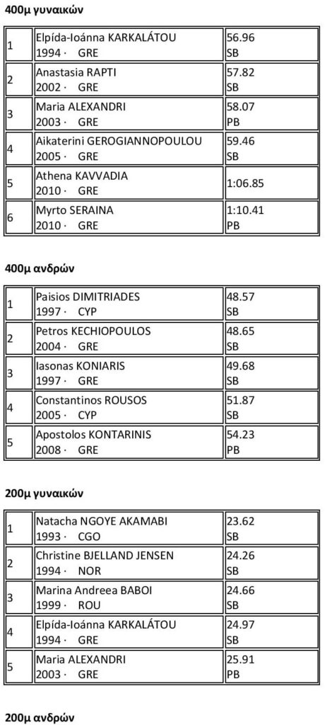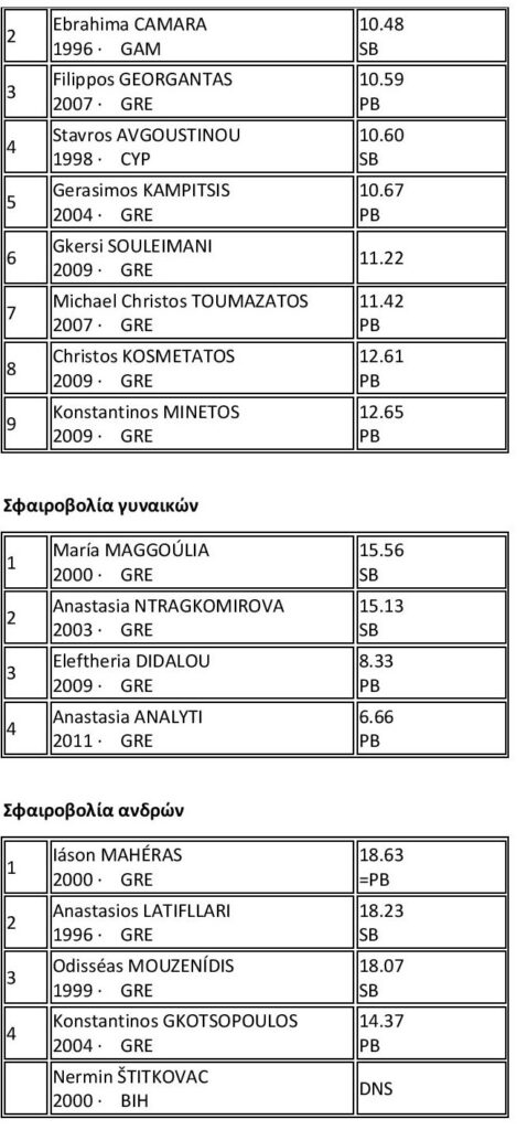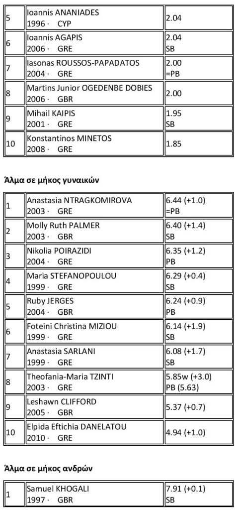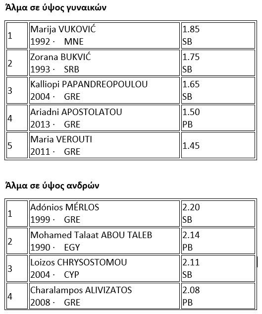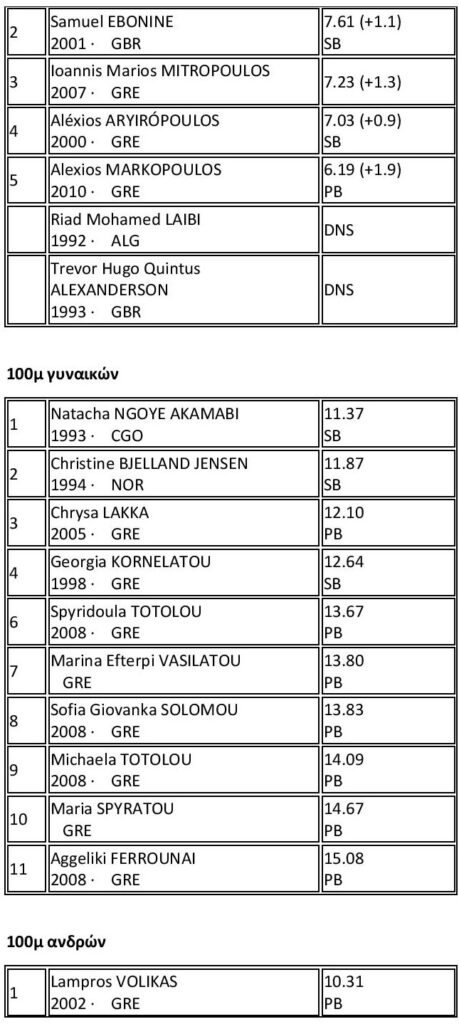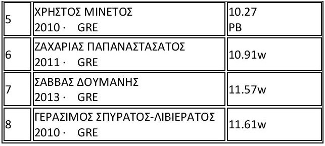 Σημείωση: P.B (Personal Best) ατομικό ρεκόρ