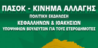 Η εκδήλωση των υποψήφιων Βουλευτών Κεφαλονιάς – Ιθάκης του ΠΑΣΟΚ για...